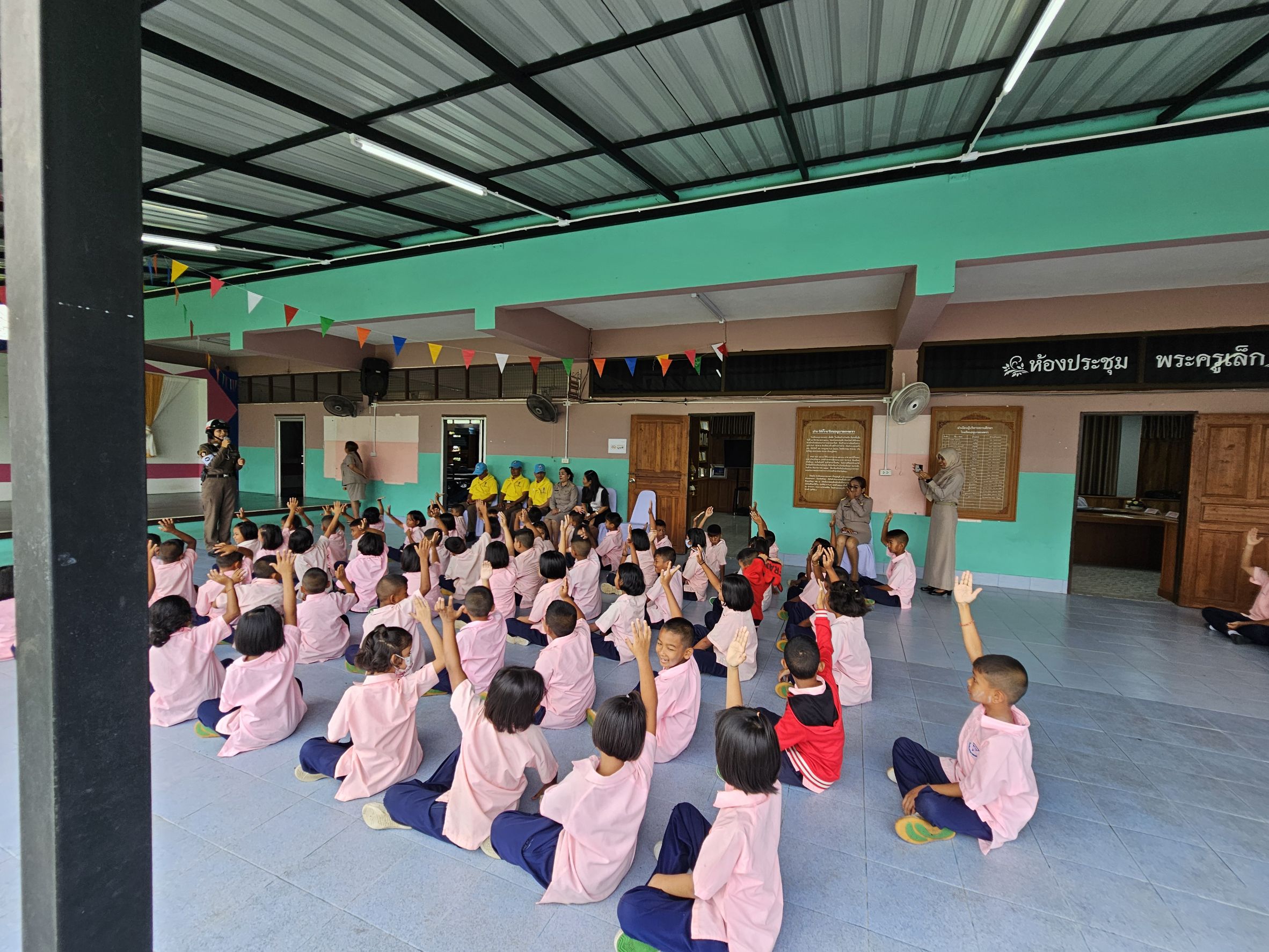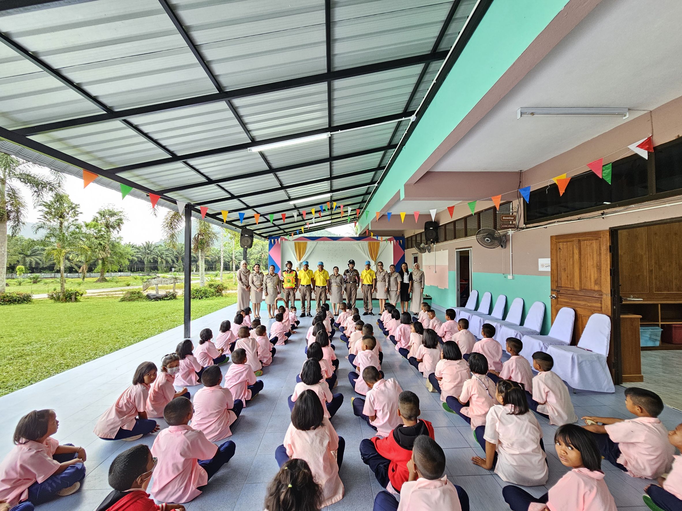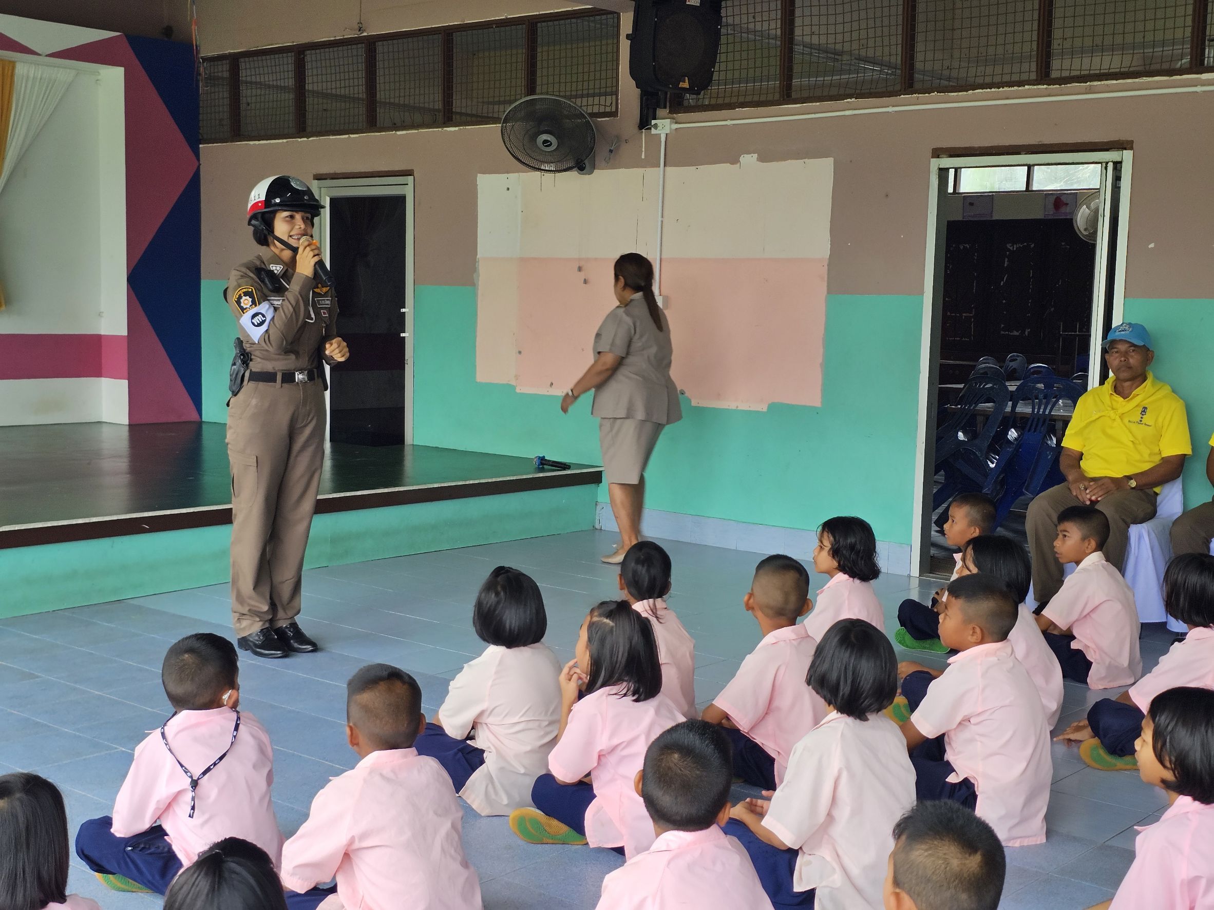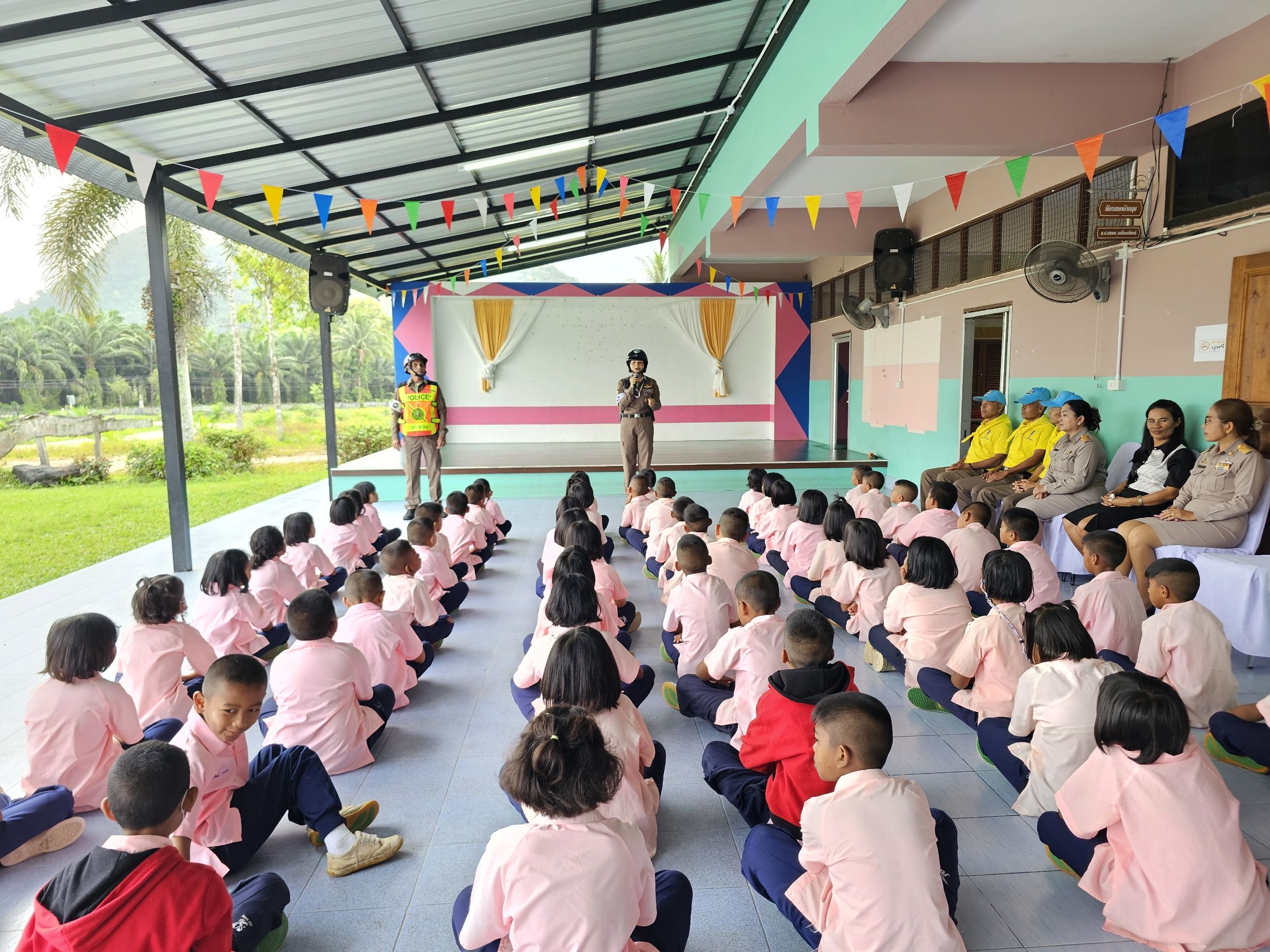 วันที่ 10 มีนาคม 2568 เวลาประมาณ 08.00 น. ภายใต้การอำนวยการของ พ.ต.อ.ณัฐวุฒิ เตชะโต ผกก.สภ.กงหรา, พ.ต.ท.พิทักษ์พล สมพงศ์ รอง ผกก.ป. ฯ ,พ.ต.ท.จำเริญ จุลนวล สวป.ฯ มอบหมายให้ ร.ต.อ.หญิงเนตรนฤมนต์ ปล้องใหม่ รอง สวป.สภ.กงหรา/ปฏิบัติหน้าที่จราจร, พร้อมสายตรวจจราจร, ร.ต.อ.โสภณ แสงเจริญ รอง สว.(ป)ฯ พร้อมด้วยตำรวจจิตอาสา, ตำรวจชุด ตชส.ร่วมกิจกรรมตามโครงการ 5 นาทีหน้าเสาธง บรรยายเรื่องการสวมหมวกนิรภัย 100% กฎหมายจราจรที่เกี่ยวข้อง ,โทษและพิษภัยของยาเสพติด ณ รร.อนุบาลกงหรา อ.กงหรา จ.พัทลุง