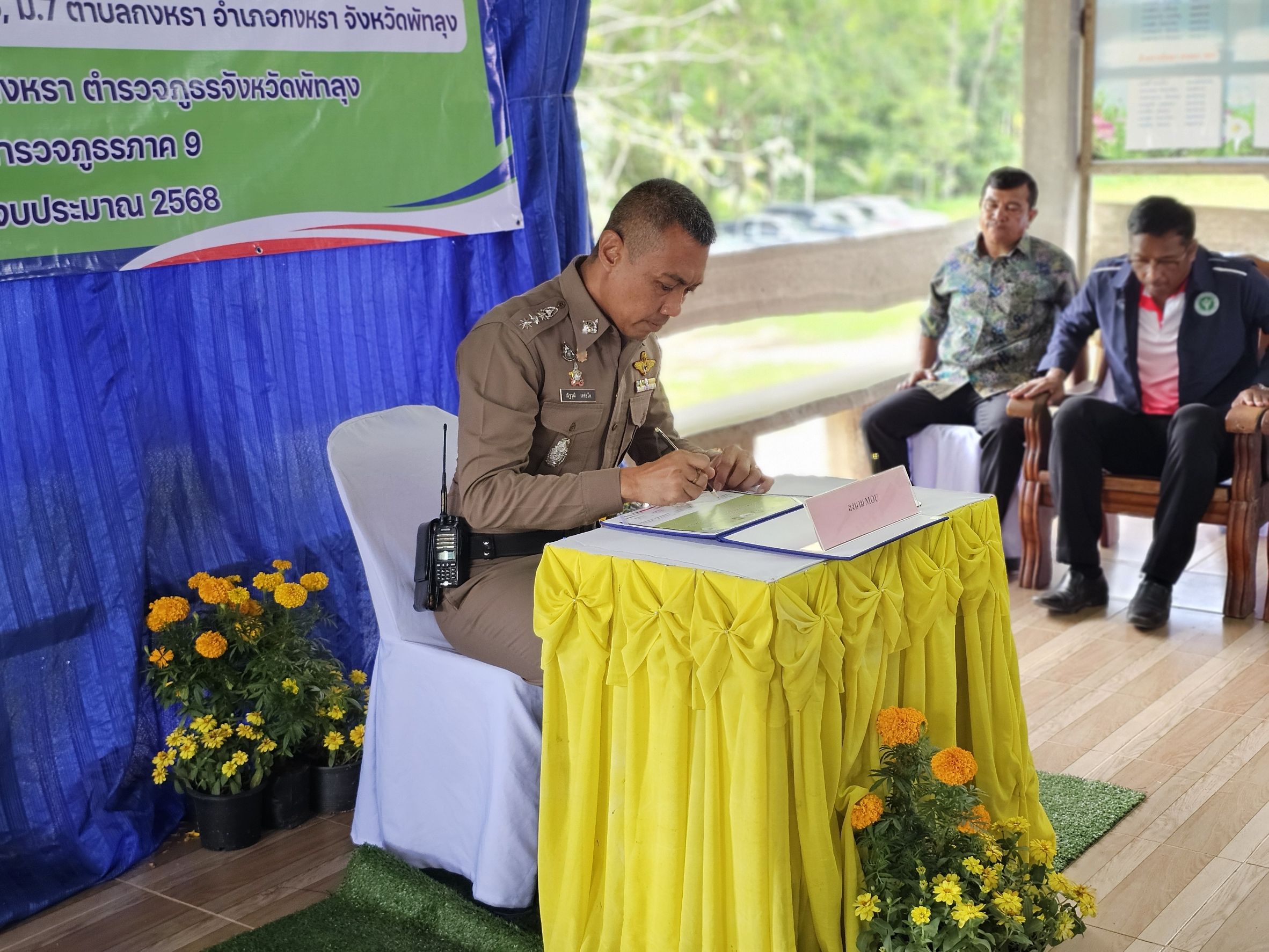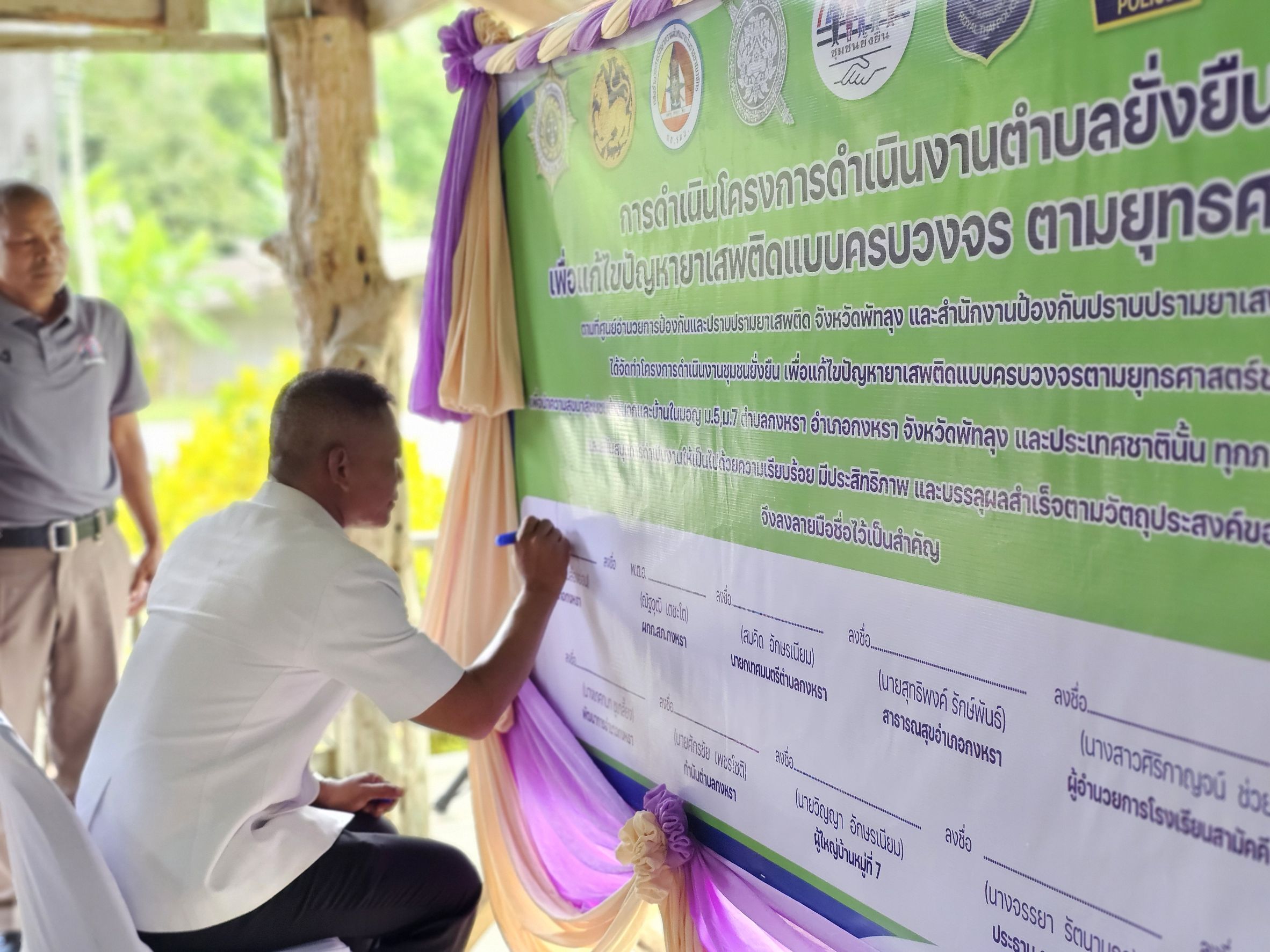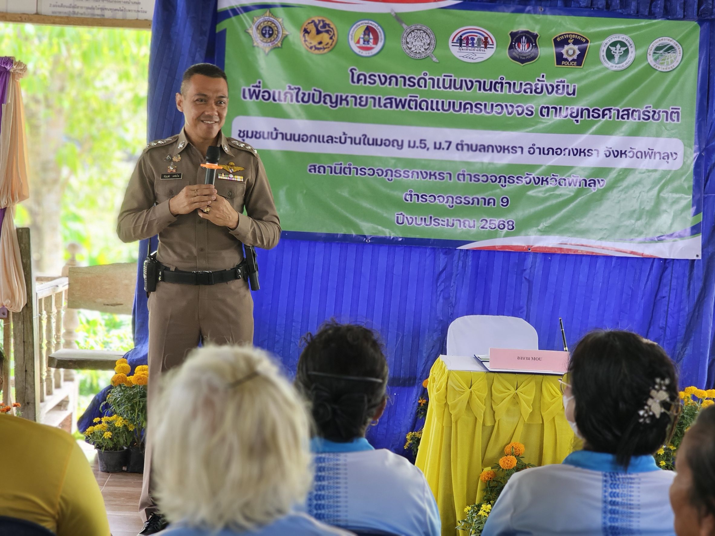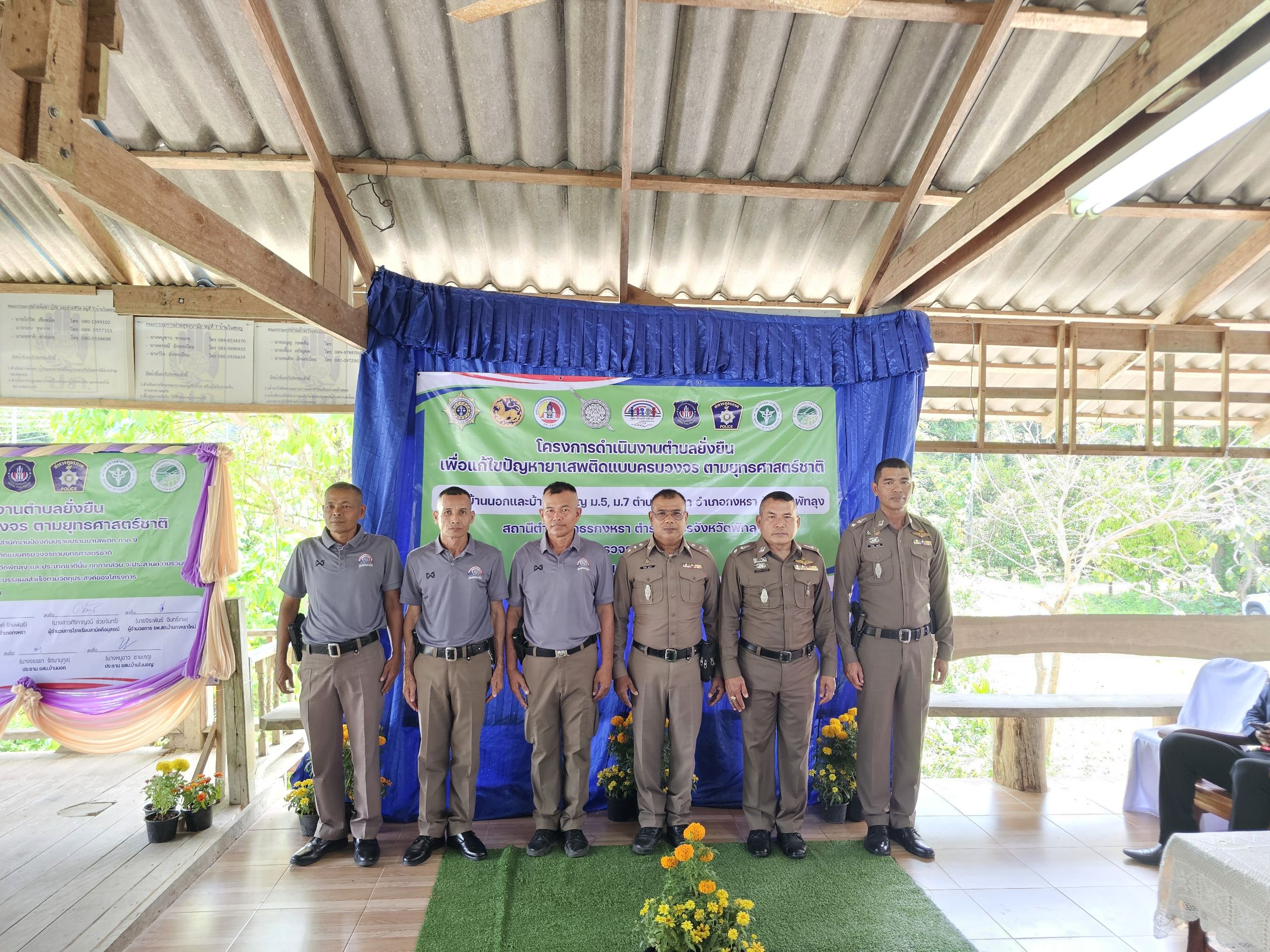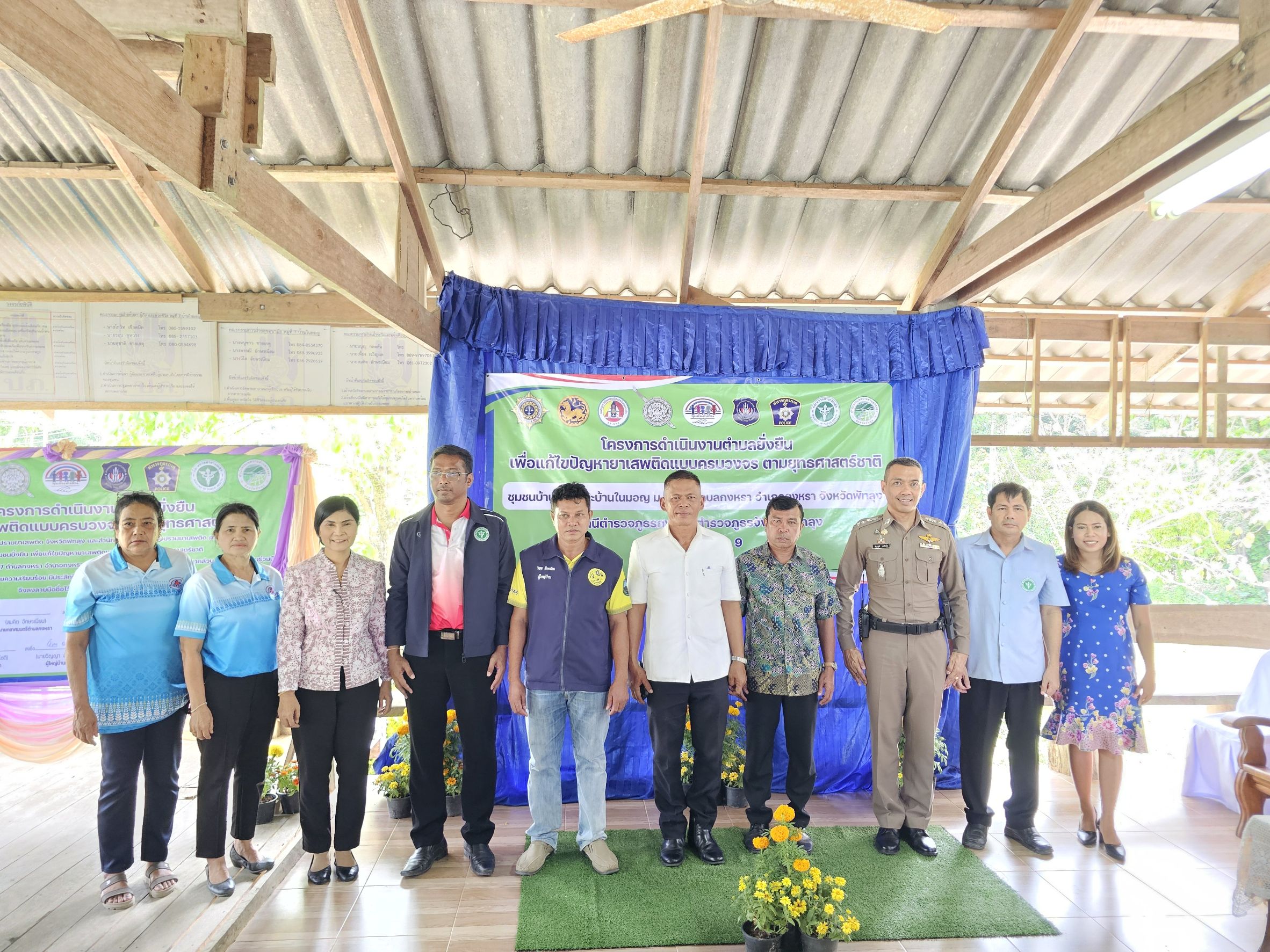 เมื่อวันที่ 13 มีนาคม 2568 เวลา 13.00 น. พ.ต.อ.ณัฐวุฒิ เตชะโต ผกก.สภ.กงหรา พร้อมด้วย พ.ต.ท.พิทักษ์พล สมพงศ์ รอง ผกก.ป.สภ.กงหรา, พ.ต.ท.จำเริญ จุลนวล สวป.สภ.กงหรา ร่วมกับ หัวหน้าส่วนราชการ, สาธารณะสุข, ฝ่ายปกครอง, อสม. และชุดปฏิบัติการชุมชนยั่งยืนฯ ร่วมพิธีเปิดโครงการดำเนินงานตำบลยั่งยืน เพื่อแก้ไขปัญหายาเสพติดแบบครบวงจร ตามยุทธศาสตร์ชาติ โดยมี นายสมควร ปล้องอ่อน นายอำเภอกงหรา เป็นประธานในพิธี ณ บ้านในมอญ หมู่ที่ 7 ต.กงหรา อ.กงหรา จ.พัทลุง