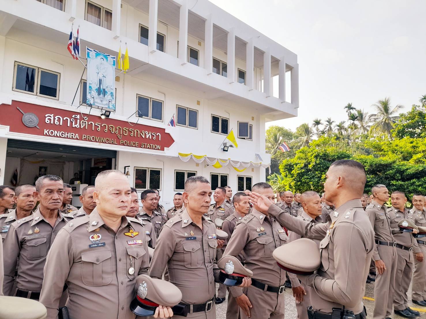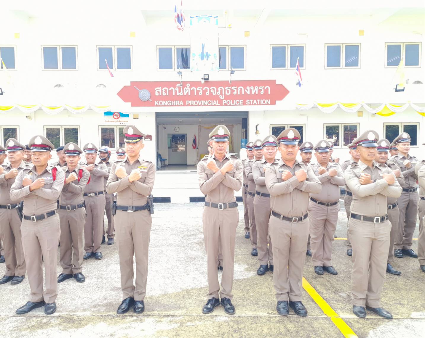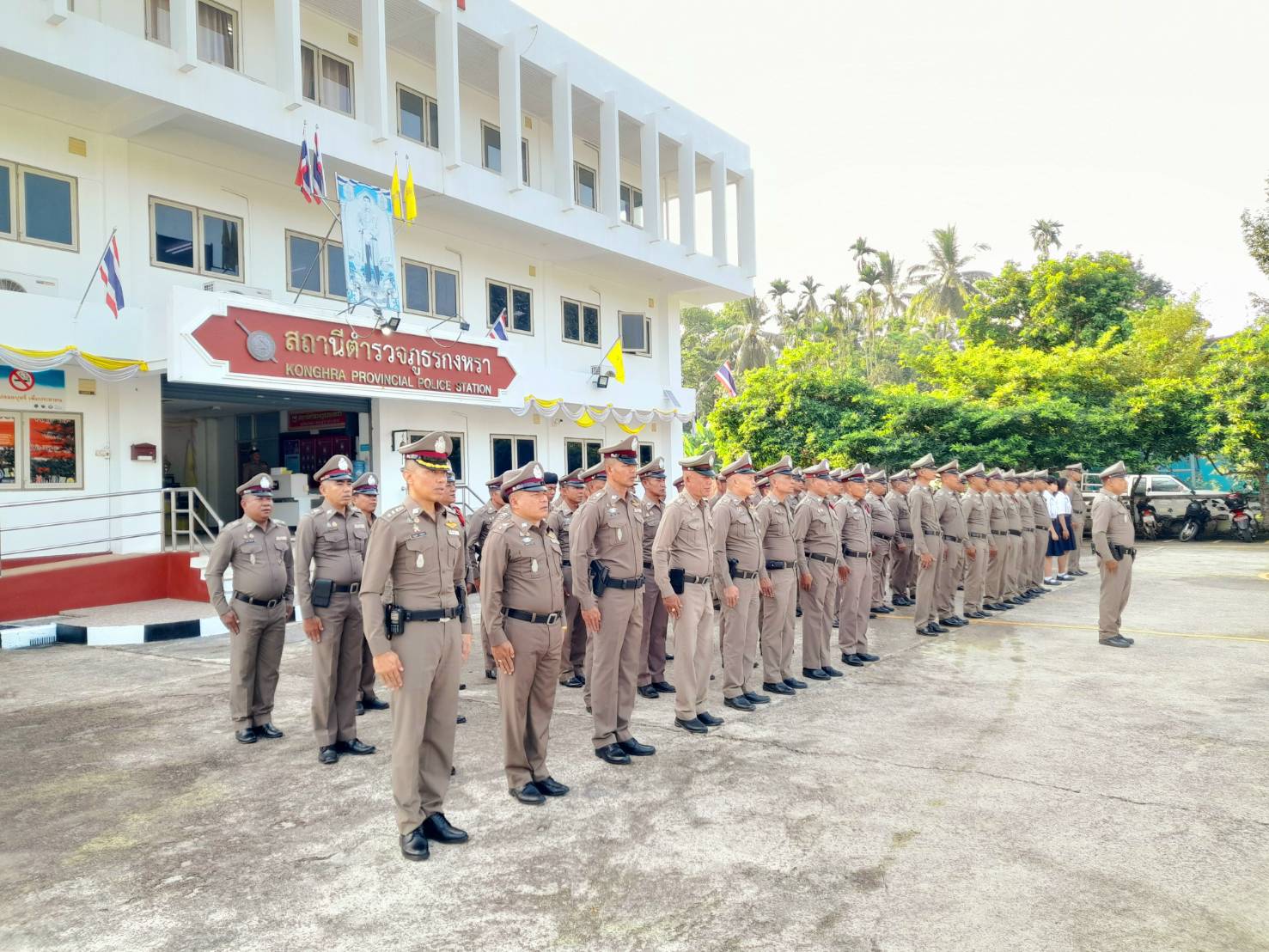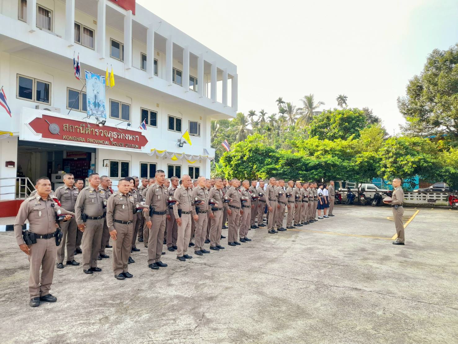 วันที่ 27 มีนาคม 2568 เวลา 08.30 น. พ.ต.อ.ณัฐวุฒิ เตชะโต ผกก.สภ.กงหรา พร้อมข้าราชการตำรวจในสังกัดสถานีตำรวจภูธรกงหรา นักเรียนฝึกปฏิบัติงาน ร่วมกันเข้าแถวเคารพธงชาติ กล่าวพระปรมาภิไธย รัชกาลที่ 10 กล่าวอุดมคติ บทปลงใจ และคำสัตย์ปฏิญาณ ตรวจการแต่งกาย ทรงผม และกวดขันระเบียบวินัยประจำสัปดาห์ พ.ต.อ.ณัฐวุฒิ เตชะโต ผกก.สภ.กงหรา ได้สั่งกำชับการปฏิบัติหน้าที่ ขับเคลื่อนนโยบายผู้บังคับบัญชา เน้นย้ำการดำเนินตามแนวทางยกระดับการบริการประชาชนของสถานีตำรวจ และได้แสดงเจตนารมณ์ ต่อต้านการคอรัปชั่น ต่อต้านการรับสินบนและการทุจริตในหน่วยงานภาครัฐ แสดงเจตจำนงงดรับของขวัญและของกำนัลจากการปฏิบัติหน้าที่ ได้ร่วมกันดำเนินกิจกรรมแสดงสัญลักษณ์ต่อต้านการคอรัปชั่นและการทุจริตในหน่วยงานภาครัฐ บริเวณด้านหน้าอาคารที่ทำการสถานีตำรวจภูธรกงหรา