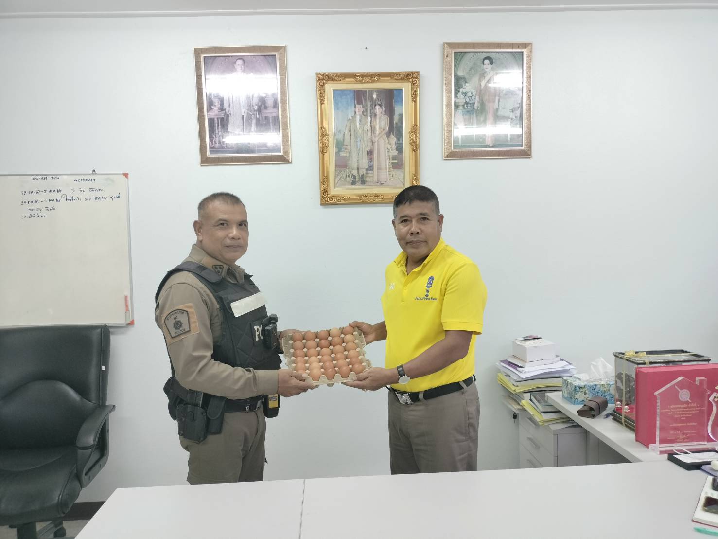 วันจันทร์ ที่ 30 ธันวาคม 2567 เวลา 15.35 น. พ.ต.อ.ปิยะวัฒน์ ขวัญศรี ผกก.สภ.กงหรา มอบไข่ไก่ให้กับข้าร